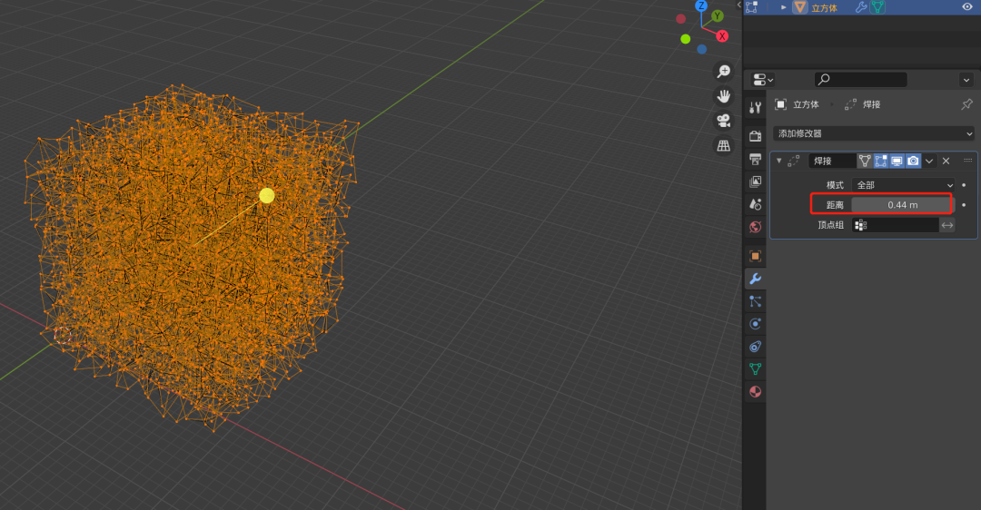 给这个删除面之后的模型添加一个**[[焊接修改器]]**,让一些重复的点进行合并