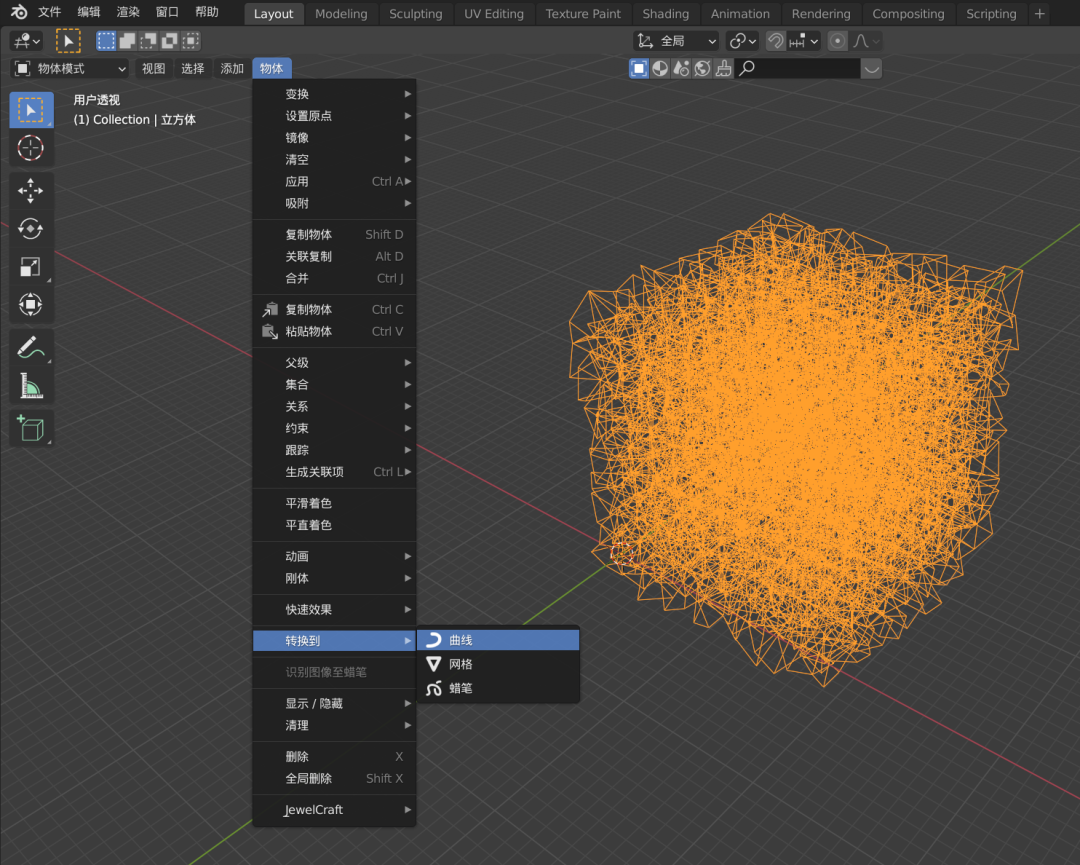 在物体模式下,物体-转换到-曲线