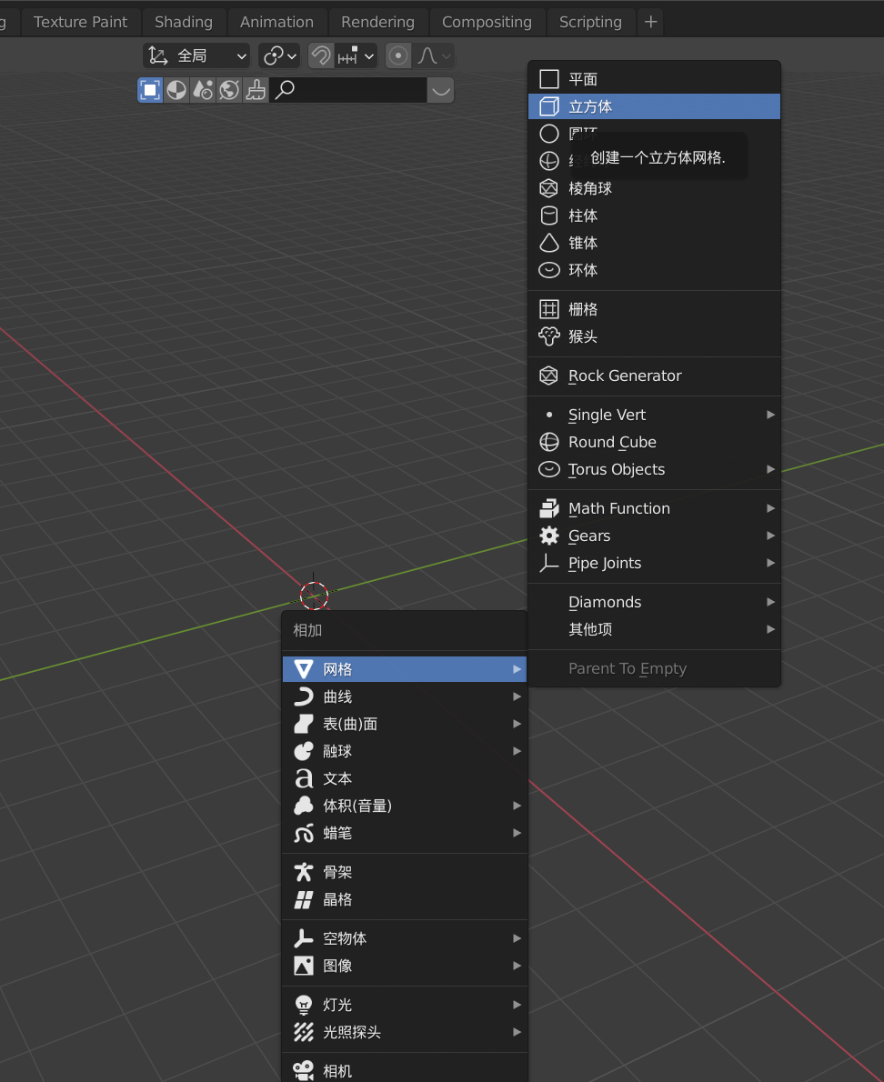 Shift+A 添加一个立方体
