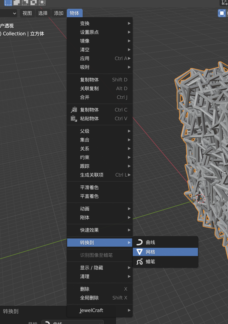 再次,在物体模式下,物体-转换到-网格
