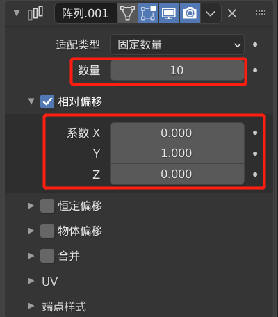 第二个阵列修改器,其相对偏移 Y 设置为 1.00