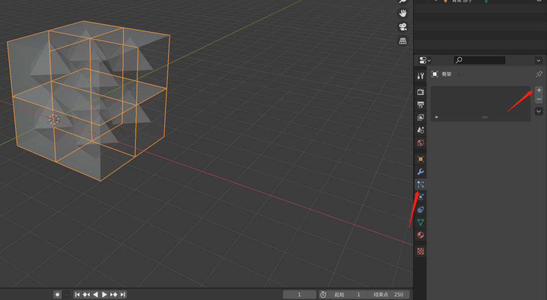 下面将其‘渲染’和‘视图显示’中的显示发射体关掉,这样就出来骨架了