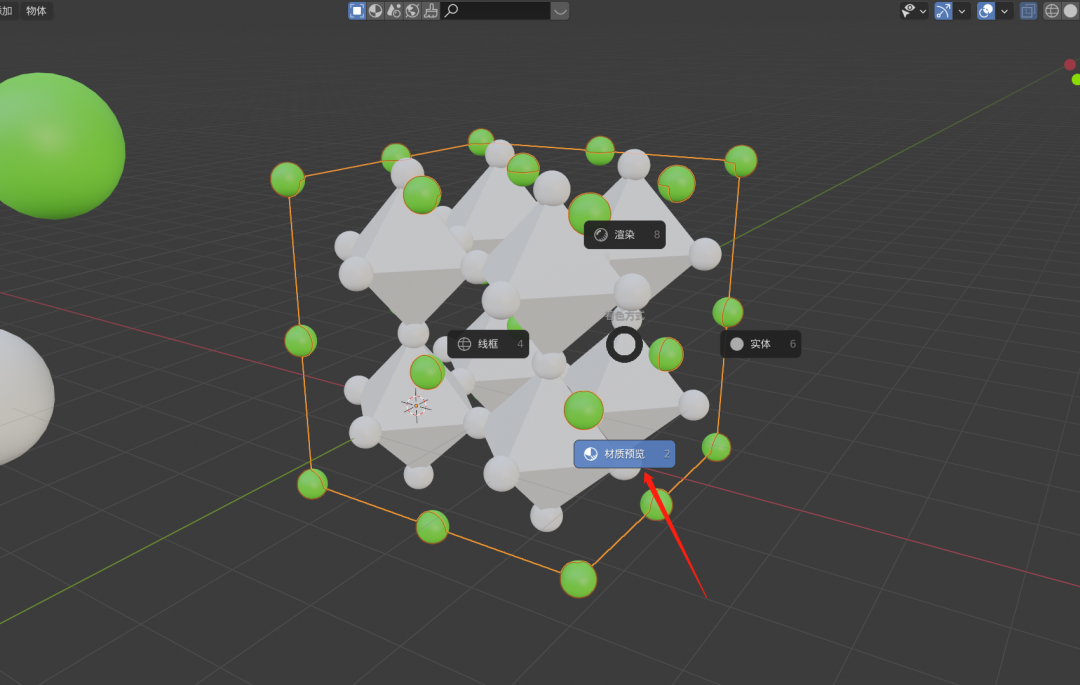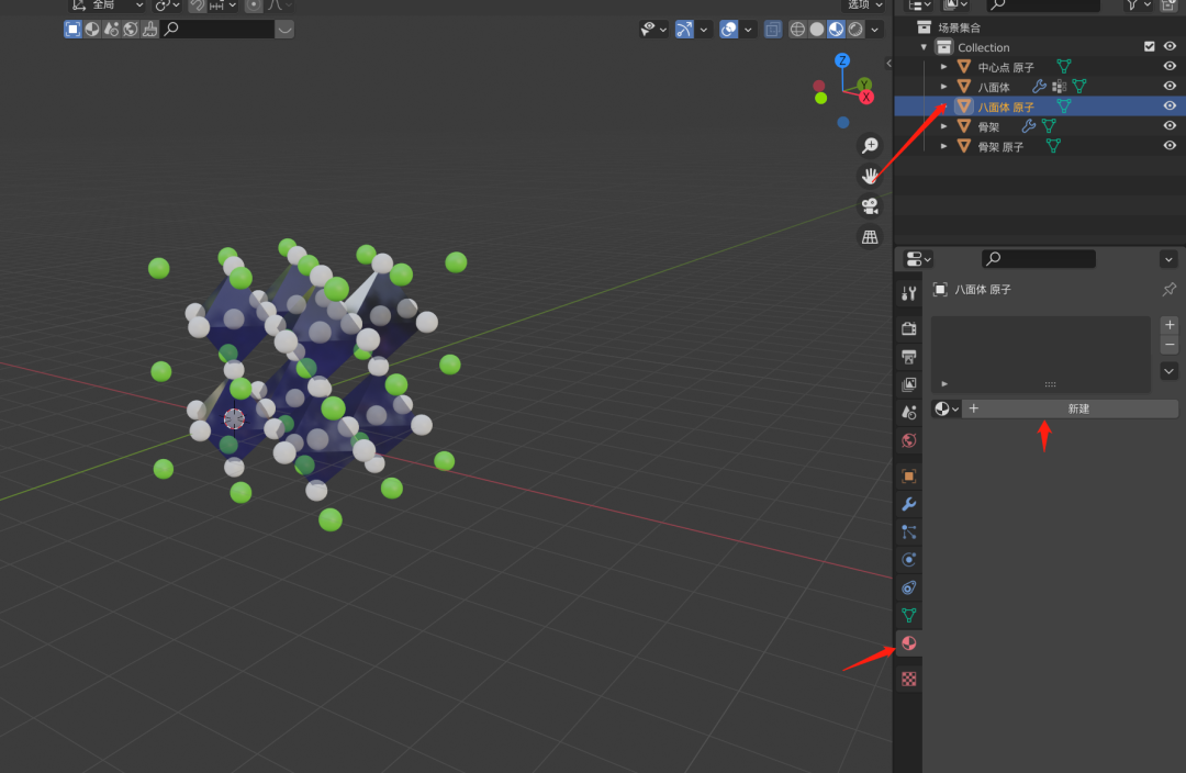 选择‘骨架原子’按下图给其添加绿色材质(大家可以选择自己想要的任何颜色)