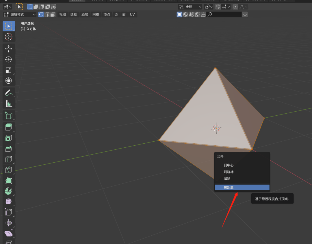 将按距离合并的合并距离设置为合适的值(什么算合适的数值呢,就是让离的很近的点合并成一个点即可,具体多少,看自己的模型就好)